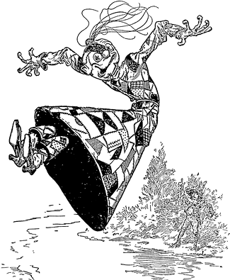 – Геть, зась, зась! – зі сміхом прокричала Латочка, знову пускаючись у танок. – А ваші моторошні зелені очі, пане Шкіднику! Ви, може, їх і не бачите, зате ми бачимо. Геть, пане Шкіднику! Ви сильно пишаєтеся тим, що прозорі. А якби були різнобарвним, як я, то зовсім задрали б ніс до небес!