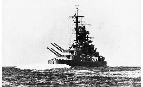 Piąte miejsce. Niemiecki pancernik Bismarck, największy okręt swoich czasów. Wyporność wyposażona 50 000 ton (dwa razy więcej niż lotniskowiec), długość 251 m, szerokość 36 m, zanurzenie 10 m. Maksymalna prędkość 55 km. h., autonomiczny zasięg nawigacji 17 000 km. Główne uzbrojenie to osiem 380 mm. armaty w czterech wieżach.
