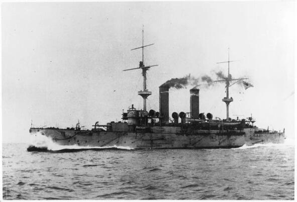 Japoński krążownik Asama, główny przeciwnik Varyaga. Wyporność 9700 ton, pas pancerny 88178 mm., Prędkość 21,5 węzłów, uzbrojenie cztery 203 mm., Czternaście 152 mm. działa, pięć wyrzutni torped. Załoga 726 osób