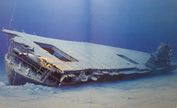 «Yorktown» spoczął na głębokości 5 kilometrów. Liczba oparta na danych z wyprawy głębinowej z 1998 roku.