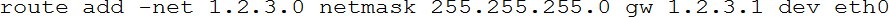 Здесь мы добавляем маршрут для сети 1.2.3.* на интерфейсе eth0: