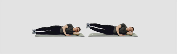 Исходное положение – лежа на левом боку, левую руку удобно положили под голову, правой рукой упор на пол перед грудью, ноги прямые. Носки на себя, поднять обе прямые ноги и держать на четыре счета. То же на правом боку. Дыхание произвольное. Темп средний. Выполнить 4 раза.