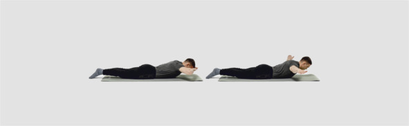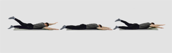 Исходное положение – лежа на животе, ноги прямые вместе, подбородок на кистях рук. Поднять голову, но не запрокидывать, руки развести в стороны над полом и держать на время до усталости. Вернуться в исходное положение. Дыхание произвольное. Темп медленный. Выполнить 4—6 раз.
