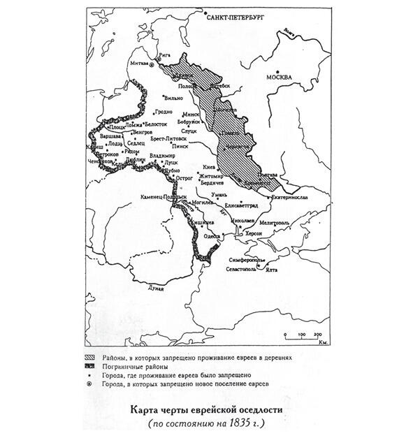 Евреи были чужеродными для русских царей, не понимавших их культуру и религию, и поэтому указом от 13 июня 1794г. была определена географическая территория для их расселения. Эта территория была названа «чертой еврейской оседлости».