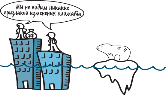 Преимущества занимаемого положения могут быстро обернуться недостатками, а руководители успешных компаний рискуют уподобиться тем, кто отрицает изменение климата. То есть они могут замечать изменения, происходящие в мире бизнеса, но при этом отрицают их актуальность для компании. Такое поведение сложнее всего переломить именно тогда, когда все хорошо и нет поводов для беспокойства. Ведь в большинстве успешных крупных компаний основное внимание уделяется высокодоходным продуктам, которые пользуются спросом.
