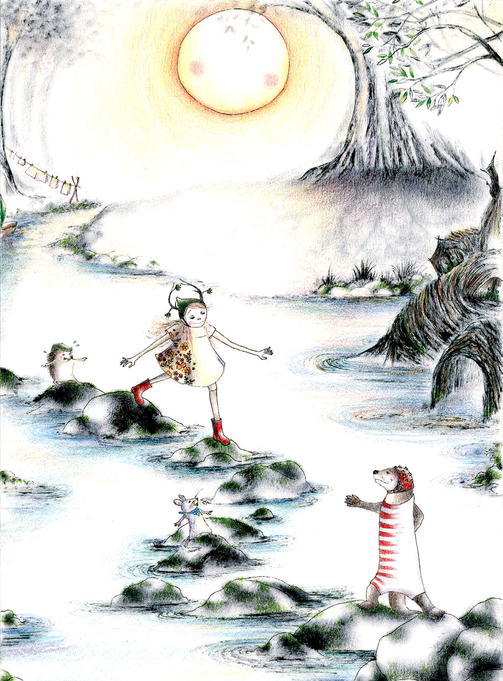Довольная собой, лютофея пошла за вещами. Но внезапно из-за ствола вылетел южный ветер и скинул её узелок вниз.