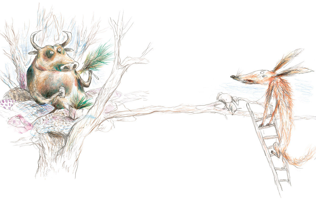 Они пришли к Корове, но она сидела на своём подушковом дубе, и ничего хорошего это не обещало. Когда Корова сидит на дереве, то лучше не лезть к ней с вопросами, она этого не любит. И даже специально берёт с собой наверх побольше травы, чтобы лишний раз не спускаться. Говорит, что терпеть не может лазить по деревьям. Впрочем, Лис с Поросёнком думают, что она просто кокетничает. Они-то знают: Корова обожает лазить по деревьям, особенно если дерево подушковое.