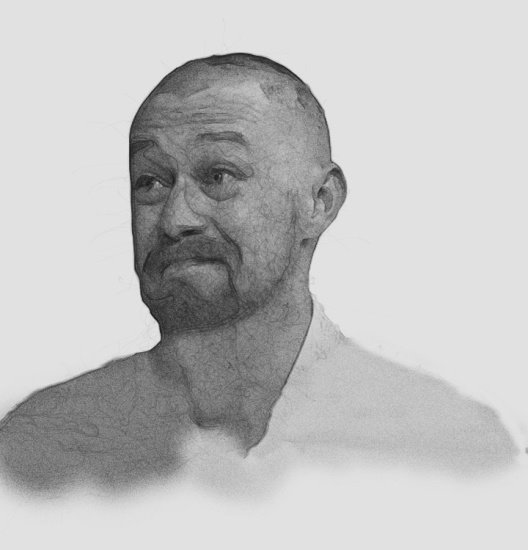 He was about thirty-five, heavyset, with a shaved head and thick black beard. His faded blue shirt had long sleeves buttoned at the wrist.