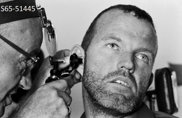 Фотография НАСА, подпись: «S65—51445 (29 августа 1965 г.) – Доктор Луи П. Балленбергер, капитан USN, начинает предварительное медицинское обследование астронавта Л. Гордона Купера-младшего, пилота-командира Близнецов-5». [11] Щетина растет примерно одинаково. Если у одного она образовалась, то и другого она тоже должна быть. Никаких упоминаний о бритье в этом шоу НАСА не упоминается. На фотографии 46638 «космонавт» Конрад по этому поводу явно шутил, мол, смотри, Купер, какая борода у тебя выросла!