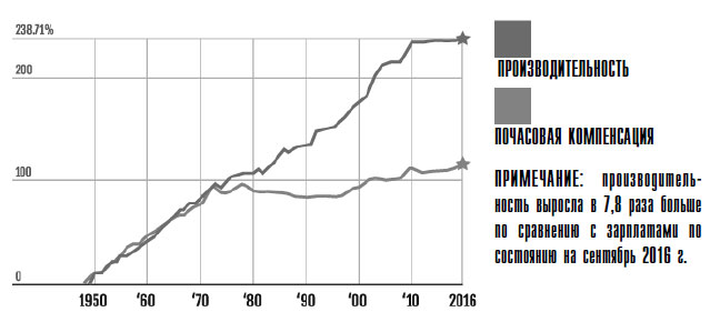 Рис. 1. Расхождение между производительностью и зарплатой