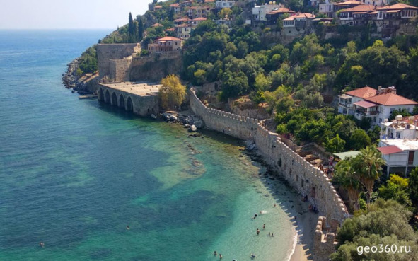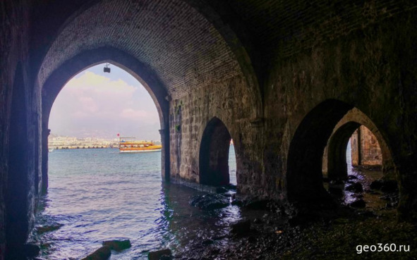 Рядом с главной достопримечательностью Алании – Красной башней – прямо из моря вырастает здание с арками. Это средневековые доки для постройки и ремонта кораблей. Башня Кызылкуле как раз и строилась для защиты этой судостроительной верфи. Сейчас туристов это место привлекает повышенной инстаграмностью – внутри верфи можно сделать очень атмосферные фото.
