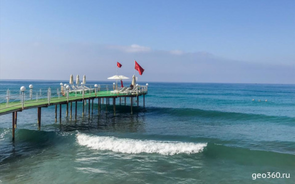 В отличие от многих других пляжей Алании, заход в море здесь крутой. Через пару метров дно резко уходит вниз. Это не очень удобно для купания с маленькими детьми. Зато, благодаря отсутствию мелководья, вода даже у берега всегда чистая, особого бирюзового оттенка.