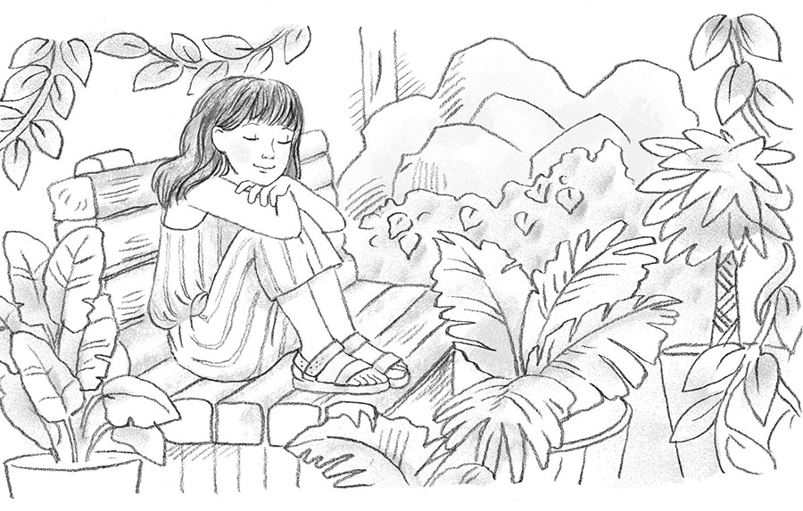 Девочка присела на скамейку, рассудив, что ничего страшного не произойдёт, если она всего минутку отдохнёт в тишине и спокойствии. Умиротворённая, она прислушалась к крикам и чириканью. Флисс закрыла глаза и попыталась представить, каково это – оказаться в самых настоящих джунглях.