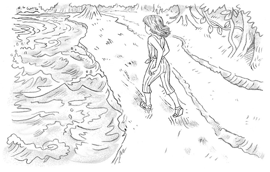 Девочка двинулась на шум и вскоре обнаружила его источник – не водопад, но широкую реку со стремительным течением. Быть может, если она продолжит свой путь вдоль неё, то найдёт деревню или кого-то, с кем можно поговорить?