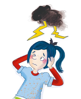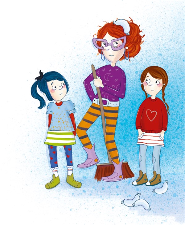 Мама тем временем налила в распылитель немного эликсира «Пятна-брысь-растворись» и обрызгала стены, которые после приступа ярости Девицы Рюдигер оказались заляпаны остатками завтрака. Луиза непременно хотела помочь. Ей нравятся мамины ведьмовские эликсиры! Но я была против. Копание в моём животе всё усиливалось. Ощущения были такие, будто там пытается прорыть туннель крот. Это явно был знак: мы должны найти Девицу Рюдигер.