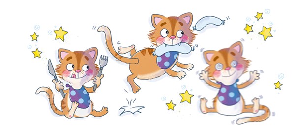 Потом он завертелся, как торнадо, и смёл всё со стола. На нас градом обрушились красная вегетарианская колбаса, огуречные ломтики, мини-арбузики и кусочки молочных колбасок. В конце концов наш кот с громким