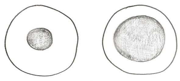 Чем различаются отношения с другими людьми, отношение к жизни у любящего и не любящего себя человека? Для наглядности и большей убедительности ответа на этот вопрос нарисуем два круга одинакового диаметра и внутри каждого из них – заштрихованные кружки разного диаметра.