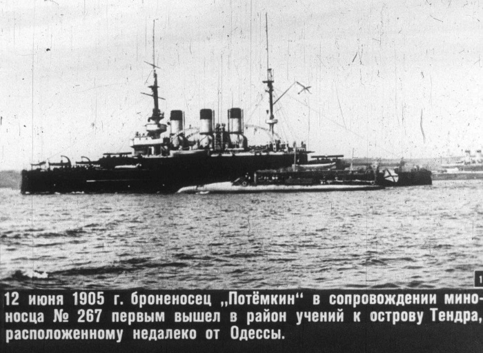 Между тем, покинувший в 21 час Одессу экипаж миноносца № 267, был весь во власти тревожной обстановки в городе, охваченном широкой политической стачкой, вот-вот грозившей перерасти в вооруженное восстание. Доставленные на тихий Тендровский рейд известия о массовых избиениях и расстрелах забастовщиков в Одессе, о первых разгоревшихся схватках рабочих с полицией быстро распространились среди матросов. Общее возбуждение охватило корабль. Достаточно было самого незначительного повода и решительного призыва к действию, чтобы пламя восстания охватило корабль».