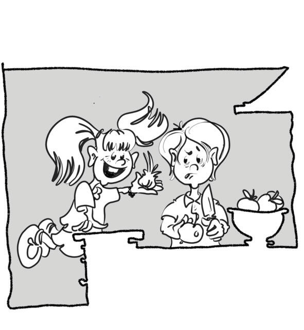 When Lilly unexpectedly entered the kitchen, Tommy wasnt glad to see her. She was constantly breaking the order. He knew her habit of tasting almost all products that she could see on the table or in the fridge.