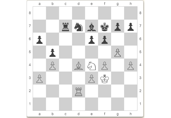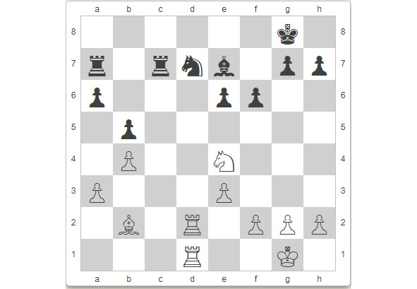 У белых лучше: чего только стоит их конь на е4, да и ладьи на вертикали d смотрятся грозно. А вот чёрные фигуры неактивны. Смыслов обезвреживает угрозы по последней горизонтали и решает подтянуть короля, разменять активные фигуры белых и добиться ничьей.
