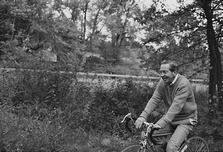 Джон Чивер едет на велосипеде