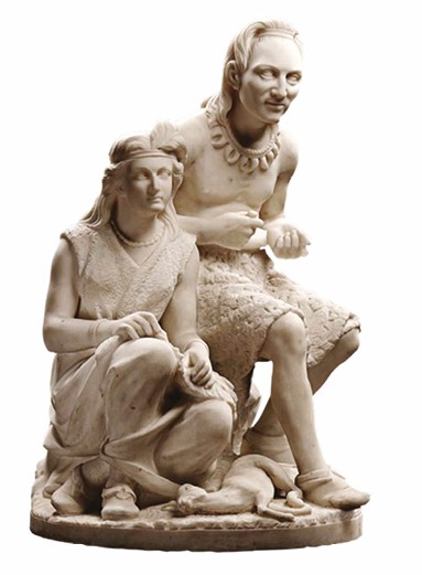 Карьера Эдмонии Льюис, дочери женщины из народа чиппева [8] и черного мужчины, примечательна тем, что складывалась в атмосфере расовых, а также гендерных предрассудков. Она училась в Оберлинском колледже в Огайо, первом американском колледже, который принял женщин всех рас, а затем переехала в Рим в 1865 году, присоединившись к группе американских скульпторов-экспатриантов, базирующихся там. Ряд работ ссылается на ее этническое наследие, как, например, эта мраморная композиция.