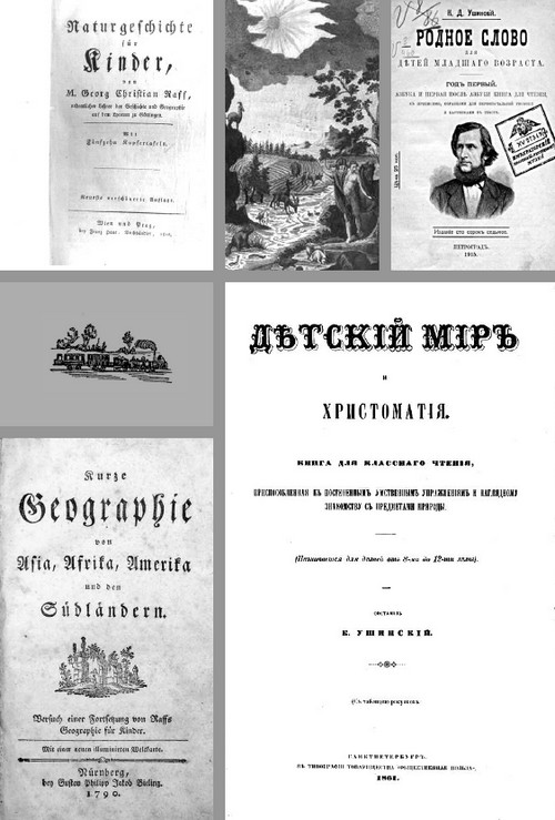 К моменту выхода пособия в свет в 1861 г. первенцу автора – сыну Павлу – шёл уже девятый год[10]. Вероятно, в процессе его домашнего обучения приходивший на дом учитель «обкатывал» и совершенствовал пособие, составленное отцом ученика. В это время Ушинский активно формирует и редактирует Журнал Министерства народного просвещения[11]. Не проходит он и мимо вопросов о начальном школьном и домашнем обучении. В конце 1860 г. (уже, вероятно, во время набора в «Общественной пользе» первого издания своего «Детского мира») Ушинский помещает в журнале реферат В. Игнатовича на «Общедоступный справочник по педагогике для учителей начальной школы, образованных родителей и друзей школы» Игнаца Томаса Шерра (1801–1870), опубликованный в виде трёхтомника объёмом более полутора тысяч страниц в Цюрихе в 1839–1847 гг. (см. Scherr 1839–1847). В предисловии к реферату Ушинский отмечает большую потребность отойти от «преобладания механизма» в первоначальном школьном и домашнем обучении. Одной из серьёзнейших причин подобной механистичности он почему-то называет полное отсутствие и у учащихся, и у учителей «рациональных руководств к первоначальному обучению» (см. Архив К.Д. Ушинского 1960 Т.2: 80). Вероятно, именно таким руководством К.Д. Ушинский видел свой учебник «для классного чтения, приспособленный к постепенным умственным упражнениям и наглядному знакомству с предметами природы», как будет обозначено на титуле «Детского мира». Первоначальное обучение закладывает первое «семя добра и зла», и Ушинский видит свою задачу не в теоретическом обременении учительства, а в подборе и предоставлении ему подобранного, систематизированного и привлекательно изложенного «готового научного материала», «расположенного в системе постепенности, изложенного по одной из тех метод, которых облегчительное действие и польза в первоначальном обучении признаны многолетним опытом искуснейших педагогов». Мы можем предполагать, что именно себя видел автор этих слов «уже взявшимся за труд подобного рода» (см. Архив К.Д. Ушинского 1960, Т. 2: 81–82).