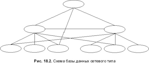 Сетевая модель появилась в также в конце 60-х годах. Смотри Рисунок 3 [2]. Подчиненные и главные объекты расположены без зависимости от иерархии.