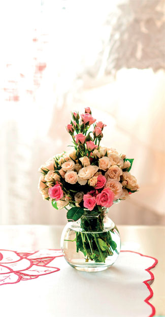Помимо обилия текстиля, непременным атрибутом стиля шебби-шик будет большое разнообразие живых цветов. Они могут быть повсюду, но никаких цветочных композиций, только пышные букеты из свежесрезанных цветов! В идеале это букет роз. Очень много розочек… Можно дополнить интерьер свежей растительностью, посаженной в деревянные ящики или стеклянные бутылки.