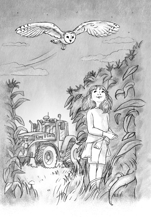 Флисс забежала с дороги в следующее поле, и снова ряды высокой сахарной кукурузы сомкнулись перед ней. После бесконечных сухих листьев, царапающихся и пыльных, Флисс мечтала оказаться в тени зелёных деревьев и начать своё расследование. Она была уверена, что сипуха ведёт её туда не просто так.