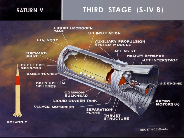 В центре указанной ступени располагается огромный бак, в верхней части, согласно версии НАСА, заливается жидкий водород, в нижней части, за сомнительной перегородкой, заливается жидкий кислород. Сказочники НАСА добавляют к этому «празднику» американской технологии указание на наличии рядом с поверхностью обшивки 2 ступени ракеты «Сатурн-1Б» контейнеров с жидким гелием. Для справки температура жидкого гелия составляет -268,9 градусов Цельсия.
