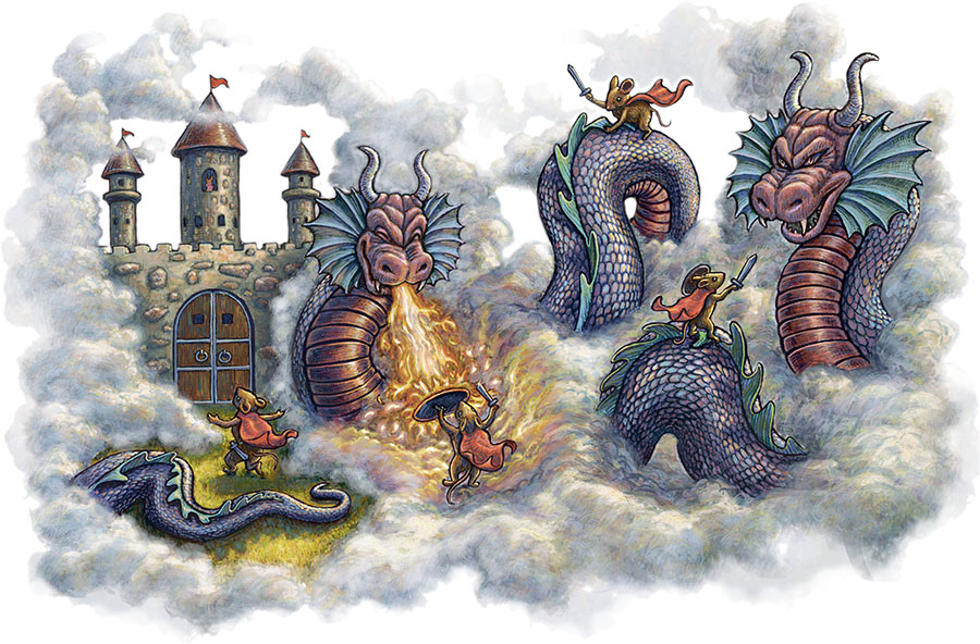 «Какой отчаянно смелый сон!» – думал Мышонок. Он задумался о храбрости и вдруг ощутил себя довольно смелым, и если не прям-таки сильным, но для своих размеров вполне бойким мышонком. Во власти этой новой силы он пришёл к ещё более великолепной мысли: он станет героем-мышонком!
