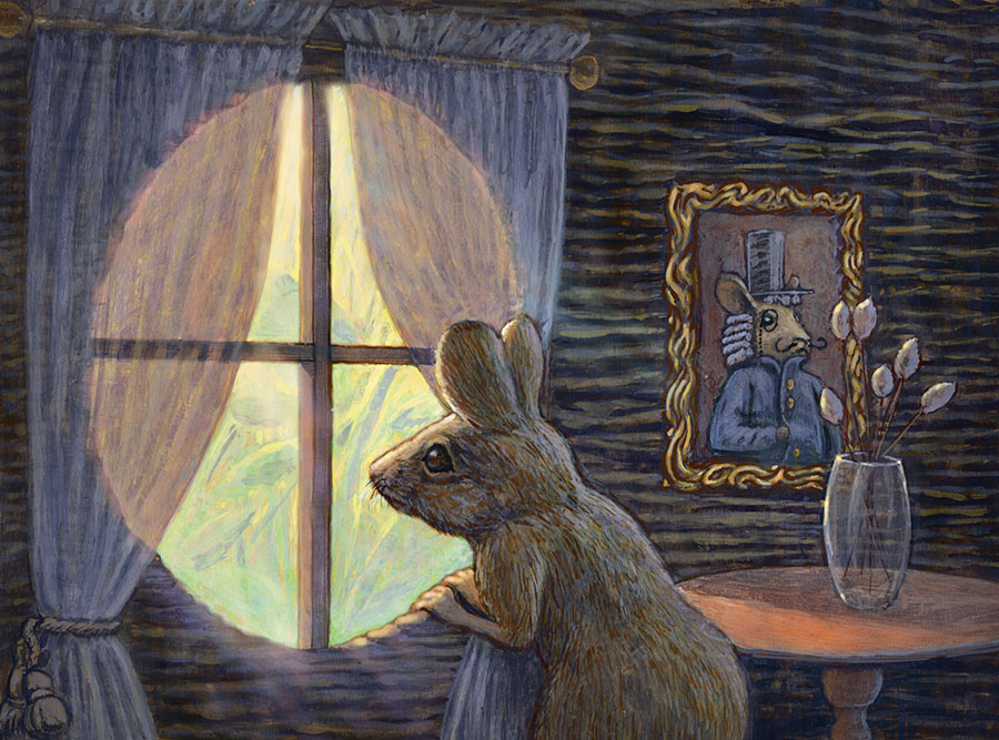 «Бывают моменты, когда надо смело взглянуть в глаза реальности», – подбадривал он себя. Мышонок прыгнул к окну и приготовился увидеть царящую разруху, но, к его удивлению, снаружи струился мягкий свет вечернего солнца.