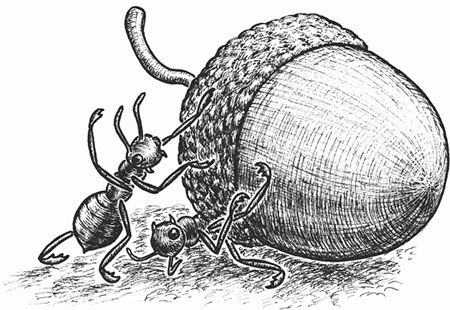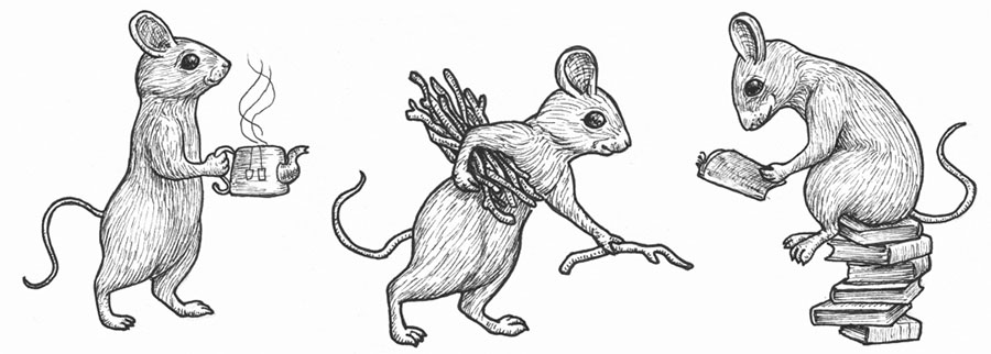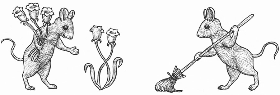 Мышонку нравилось, чтобы всё шло своим чередом, по плану, без изменений. Дни напролёт он хлопотал по хозяйству: убирал домик, собирал зёрна и колол прутики на дрова. Дрова нужны всегда: и на зиму, и вообще, на чёрный день. Довольный жизнью, он тихо напевал себе под нос.
