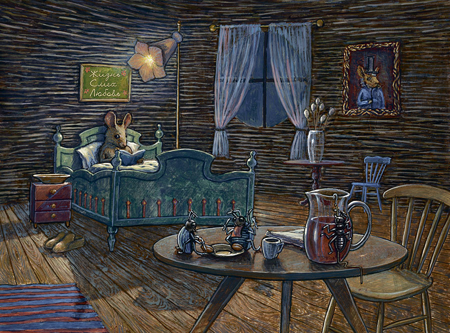 – Конец света! – закричал Мышонок. Господин Белкин попытался сверху извиниться, но соседа уже и след простыл. Мышонок запер дверь на три замка и спрятался под кровать. Только там он смог отдышаться.
