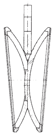 Для исключения прикипания при высоких температурах и достижения хорошей герметичности разработан упругий диск, состоящий из двух половин, соединенных в центре, например, коротким валом, позволяющим менять половинкам клина положение друг относительно друга на несколько градусов (рис. 2.5.). Упругий клин делает задвижку герметичной с двух сторон в широком диапазоне давлений и температур и требует минимального управляющего усилия.
