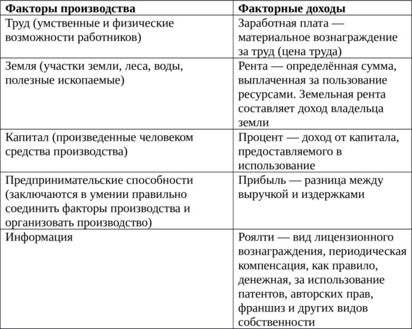 Факторные доходы – это доходы (поступления) от использования факторов производства.