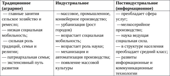 4. Наиболее популярной в современной социологии является концепция, в которой выделяется три типа общества: доиндустриальное, индустриальное и постиндустриальное