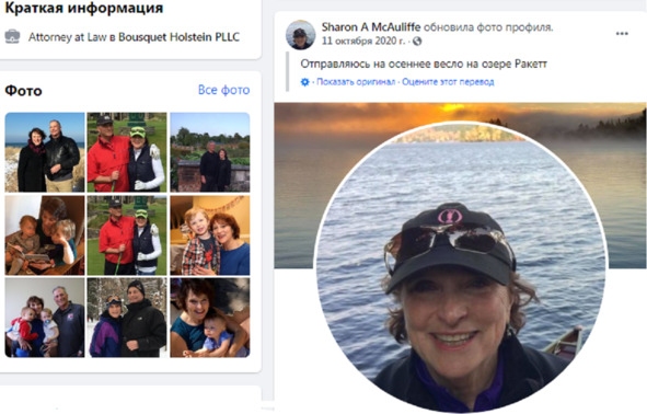 Если в начальной биографии указано ложное имя мужа, то в новой версии жизни «профессора» реальное имя тоже не меняется. Но профессор не такой откровенный, как можно было предположить. Нет никаких сведений о том, где училась «профессор» Шерон. Она не указывает, какую школу закончила, какой ВУЗ. Нет точной даты рождения. [7] По этим меткам биографии легко вычислить есть такой человек в США или его нет, и не было никогда. По фотографиям на странице Фейсбука видно, что «профессор» Шерон-2 живет безбедно. Она не утруждает себя нудной работой. Общается с внуками. Может позволить себе длительный отдых на природе, имеет свой собственный загородный дом. Правительство США не оставило свою фальшивую «героиню» в беде и хорошо заплатило за молчание. Если бы Шерон-2, она же Шерон-1 начала болтать, то лишилась бы своего материального благополучия, а, возможно, и своей жизни.