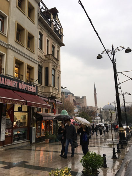 Мы прошли несколько метров вдоль трамвайной линии и остановились недалеко от остановки «Султанахмет» напротив незамысловатого трехэтажного желтого здания. Подняв глаза, я прочитала вывеску «Sultanahmet Köfteçisi Selim Usta». Мой новый знакомый шагнул к двери, приглашая меня за собой.