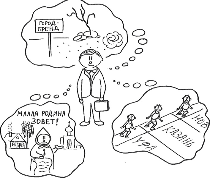 ЖизненноеНа одной из конференций по туризму выступали представители регионов. В основном высказывания носили общетеоретический характер: «Для решения проблемы необходимо основать ассоциацию, записаться к нам на курсы, создать кластер». О кластерах говорилось много В заключение одна участница подошла к микрофону и после эмоциональной речи о разрушении памятников федерального и мирового значения чуть не плача сказала: «Как же нам сохранить наши памятники?! Пусть к нам придет уже хоть какой-нибудь кластер!». Не исключено, что широкое обсуждение темы брендинга и продвижения территории приведет к аналогичным высказываниям: «Давайте создадим уже хоть какой-нибудь бренд».