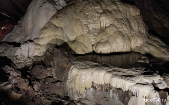 Карстовые натеки в Новоафонской пещере