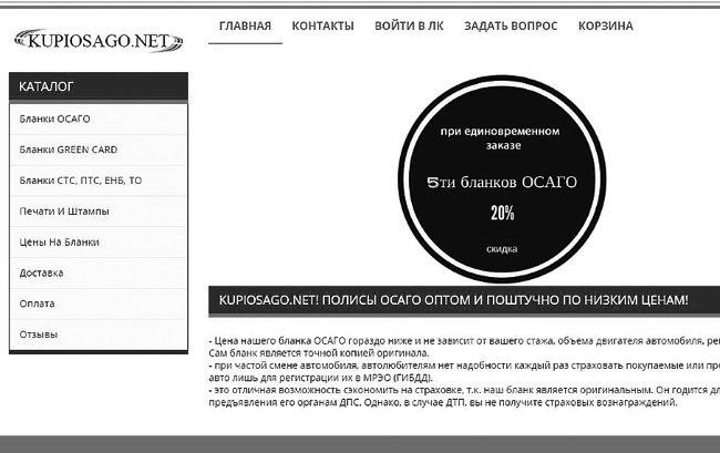 Рис. 8. Веб-сайт фиктивной страховой организации (1)