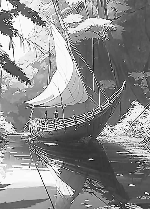 Тем временем лодочка причалила к берегу. Один из лебедей подставил своё крыло для того, чтобы гном и мальчик легко сошли на берег.