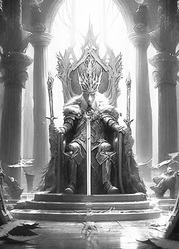 Это был мужчина лет семидесяти, хорошо сложённый, с волевым подбородком и цепким взглядом. В руке он держал меч и опирался на него, как на трость. Это был лесной король. Дамы замерли в глубоких реверансах, а кавалеры сняли шляпы и склонили головы. Зеркало за спиной у лесного короля превратилось в высокий хрустальный трон. Король с достоинством верховного правителя занял своё место. Голос его вдруг полился мощным, густым потоком, проникая в души собравшихся, порождая восторг и трепет.