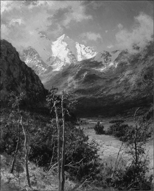 Горный пейзаж. Вершины Эльбруса. Художник А.А. Киселев