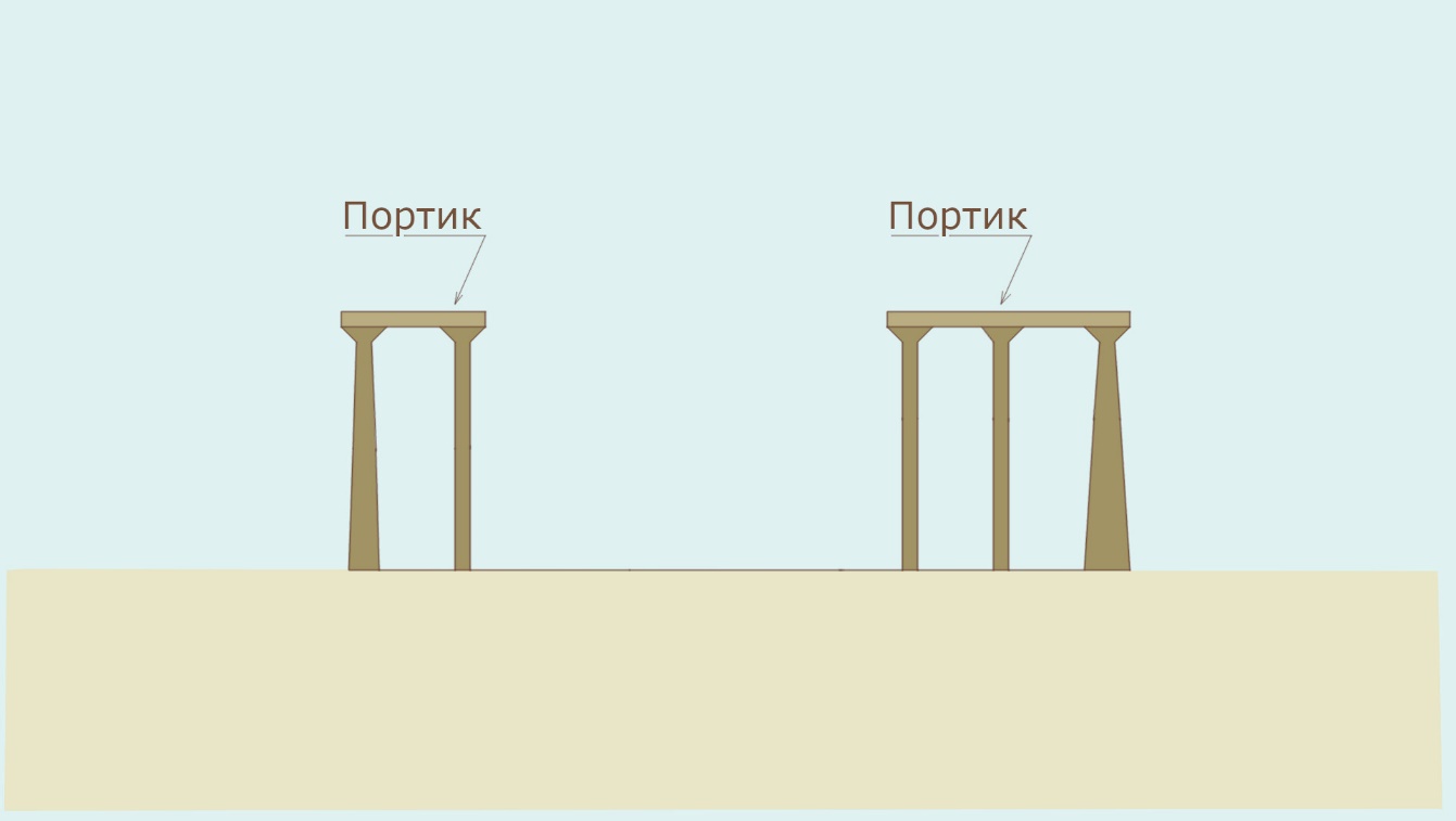 Портик. На рисунке 5.2 представлен поперечный разрез двора древнеегипетского храма. Крыша левого портика опирается на стену и один ряд колонн. Таких цепочек опор может быть разное количество. Были распространены помещения, в которых на какой-либо стороне такие конструкции вообще отсутствовали.