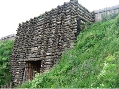 В работе [12] представлен разрез оборонительного вала славянской крепости Мекленбург (земля Мекленбург-Передняя Померания) с деревянным каркасом, заполненным грунтом.