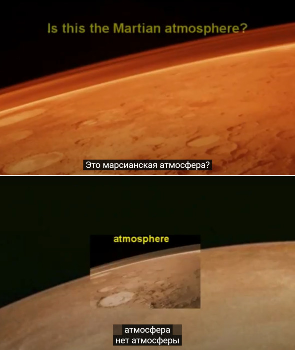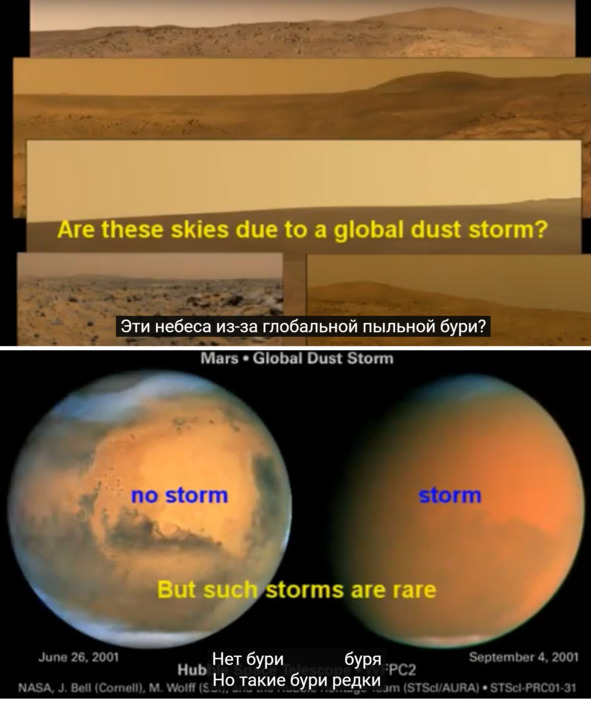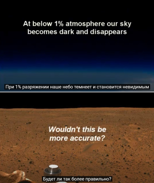 Джерри: «При 1% разряжения воздуха наше небо темнее и становится невидимым». [3] Небо на Марсе не при каких условиях не могло быть светлым, оранжевым или серым.