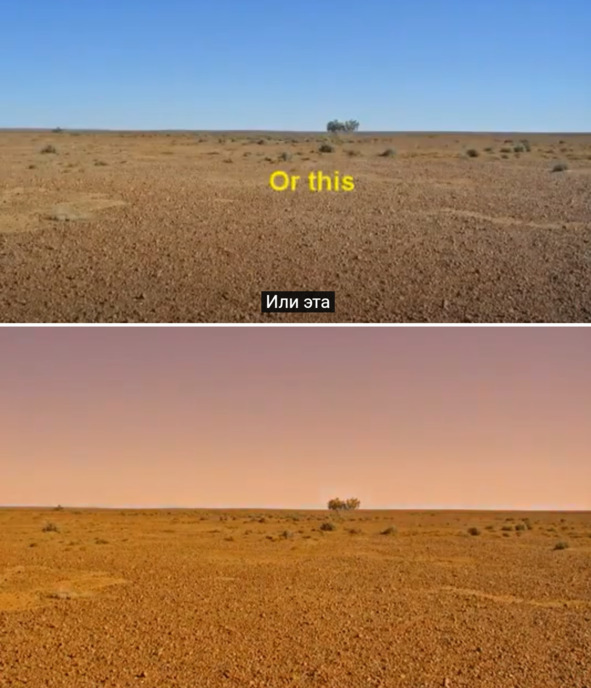 Джерри продемонстрировал и обратный процесс, как из земных снимков можно создать «марсианские» пейзажи. В настройках изображения он открыл функцию «Баланс цвета» и начал менять ее в сторону красного цвета. В итоге у Джерри получился снимок, который полностью совпадал по цвету неба с американскими фотографиями «Марса». Ниже представлена еще одна фотография, сделанная на Земле. Исходный снимок содержит изображение голубого земного неба. После простой манипуляции с цветом фотография предстает в другом виде.